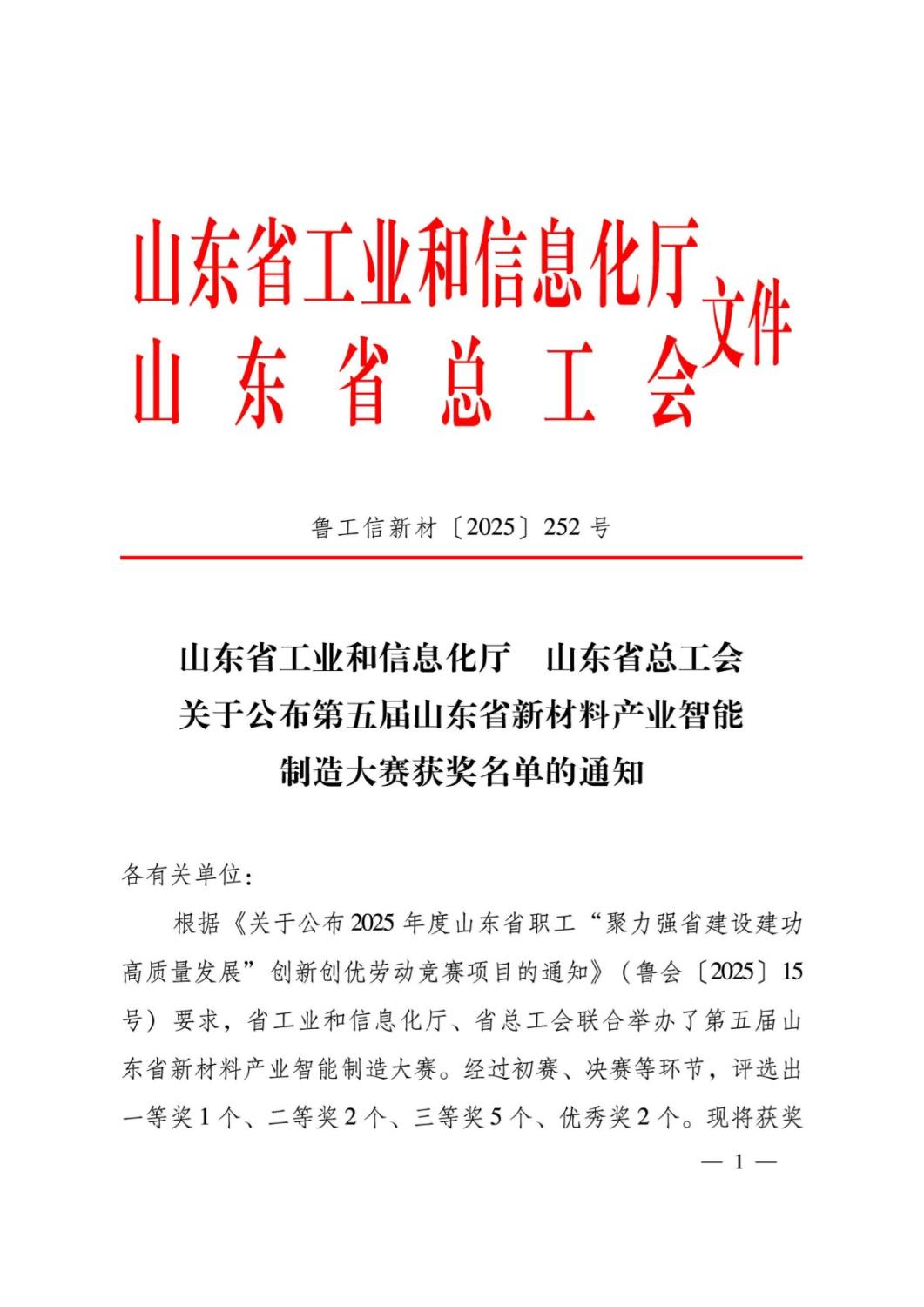 祝賀!沂南一企業獲省獎!